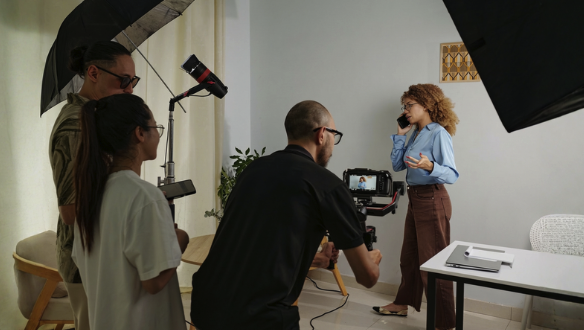 Nous travaillons avec du matériel professionnel (caméras cinéma, micro, éclairage), garantissant une image et un son de qualité.